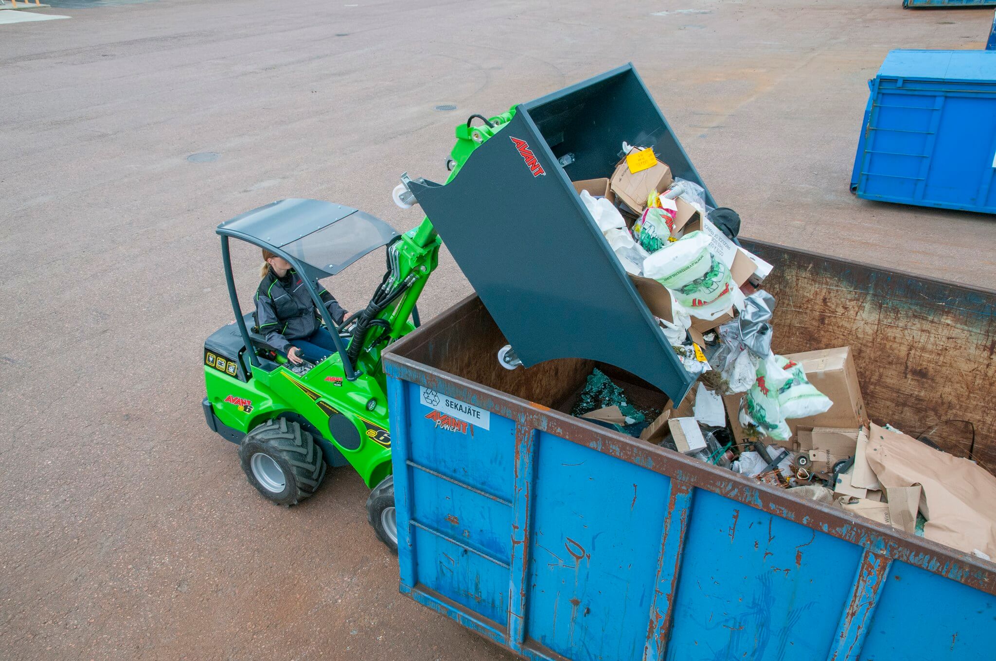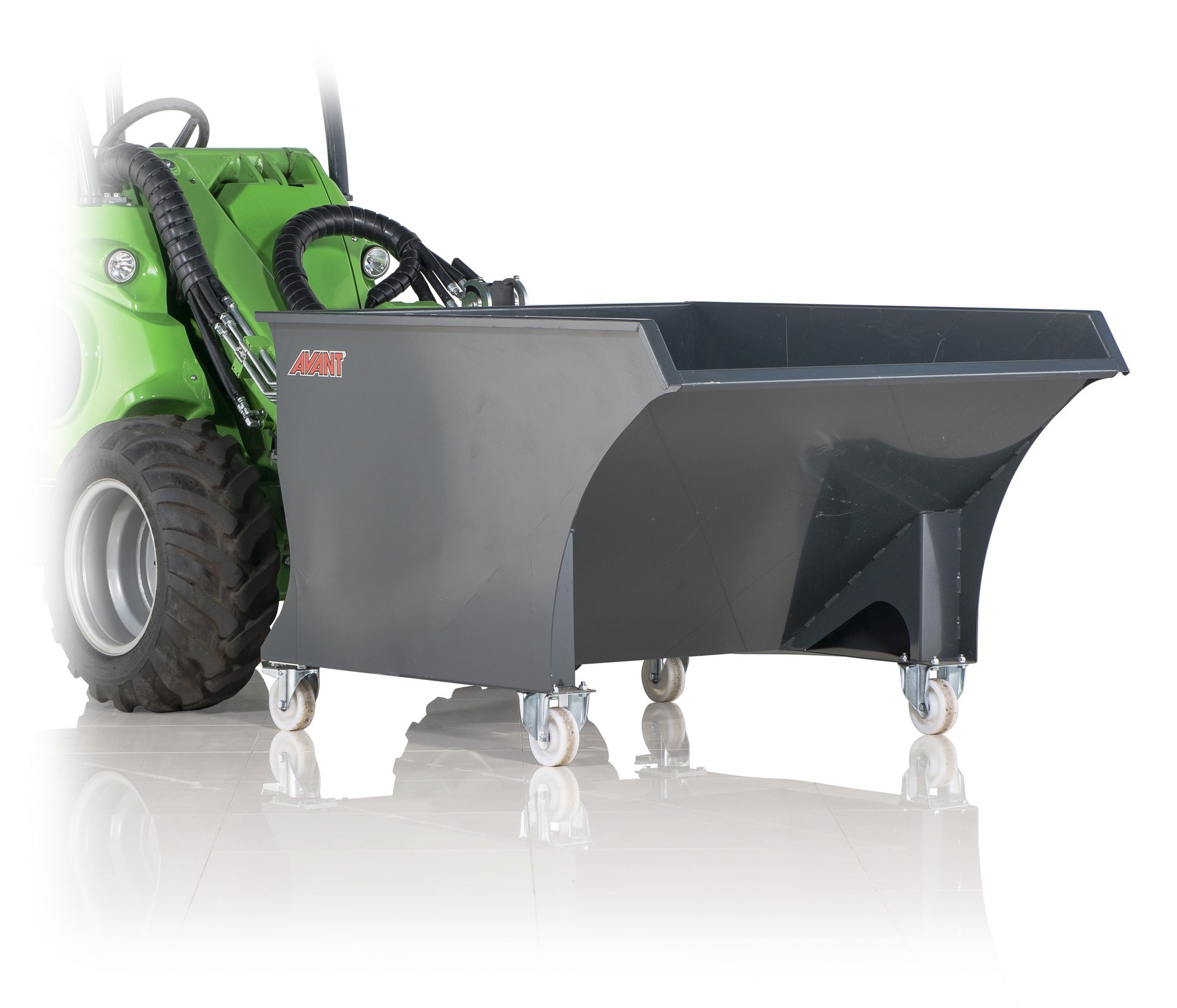 Nauji Avanti atliekų kaušai yra didesni nei ankstesni modeliai ir savo dizainu primena vartomus konteinerius, tačiau išlaiko suderinamumą su Avanti krautuvais tiek transportavimui, tiek ištuštinimui. Papildomai galima pridėti ratukus, leidžiančius kaušą pildyti ir perkelti rankiniu būdu. Dėl to šie kaušai ypač tinka naudoti tokiose vietose kaip arklidės ar gamyklos, kur krautuvo naudojimas gali būti ribotas arba nebūtinas. Užpildytą atliekų kaušą galima lengvai pervežti ir ištuštinti naudojant Avanti krautuvą.
