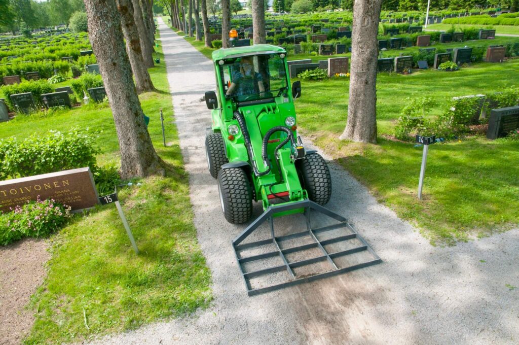 Lyginimo grotelių naudojimas ženkliai sumažina rankinio kasimo poreikį todėl darbas tampa efektyvesnis ir sutaupoma laiko.