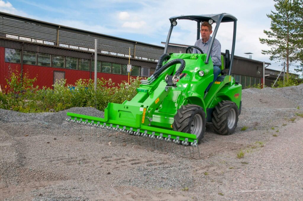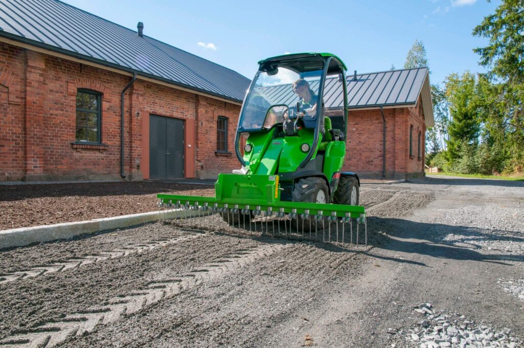 Avanti priekinis grėblys yra paprastas ir ekonomiškas priedas, skirtas smėlio ir žvyro keliams išlyginti bei užbaigti. Tai idealus įrankis norint pasiekti lygų ir estetišką dangos paviršių įvairiose važiavimo vietose. Grėblio spyruokliniai dantys veikia efektyviai – jie grėbia ir lygina paviršių, sudarydami tolygų pagrindą.
